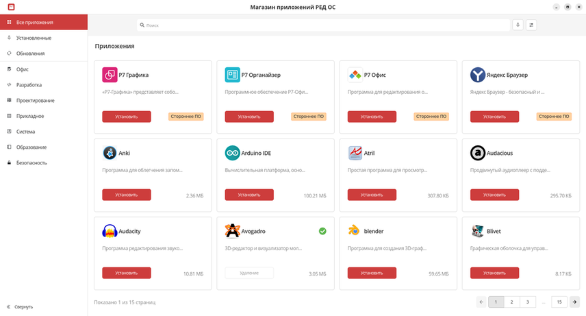 Сейчас каталог насчитывает более 170 приложений: пользовательское программное обеспечение из состава репозитория РЕД ОС и продукты от технологических партнёров компании. Каждый пакет из официального репозитория проходит обязательную проверку безопасности и работоспособности перед включением в «Магазин приложений».
