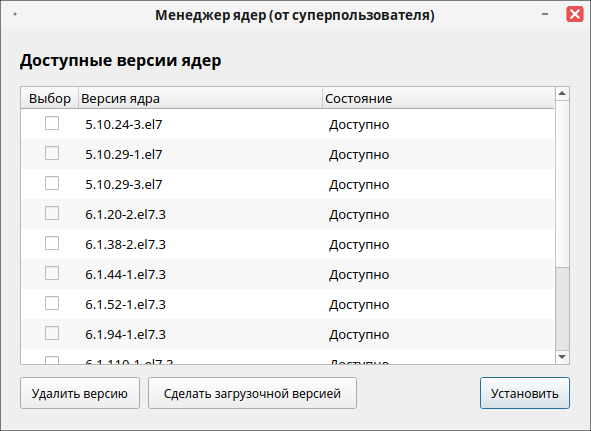 В репозитории РЕД ОС доступна специальная утилита для управления ядрами операционной системы — kernel-manager.