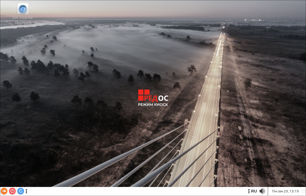 Режим киоска в РЕД ОС реализуется с помощью доработанной командной оболочки Bash и окружения рабочего стола MATE.