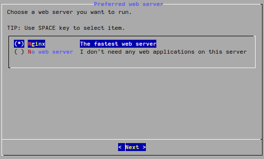 Выберите веб-сервер — nginx. Нажмите Enter для продолжения.