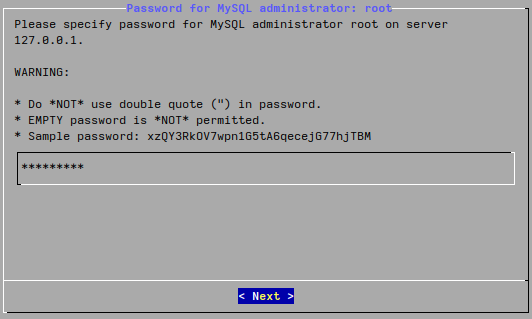 На первом шаге должен быть задан пароль root, по умолчанию пароль не задан, нажмите Enter.
