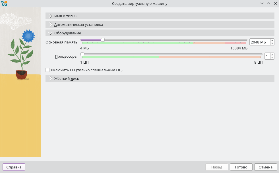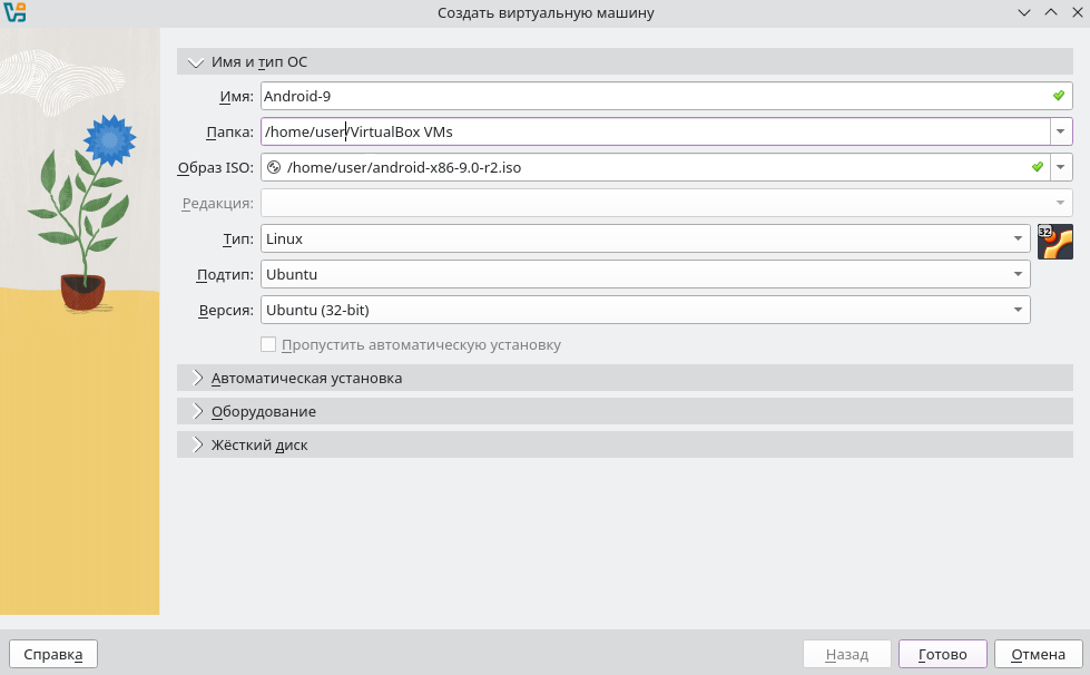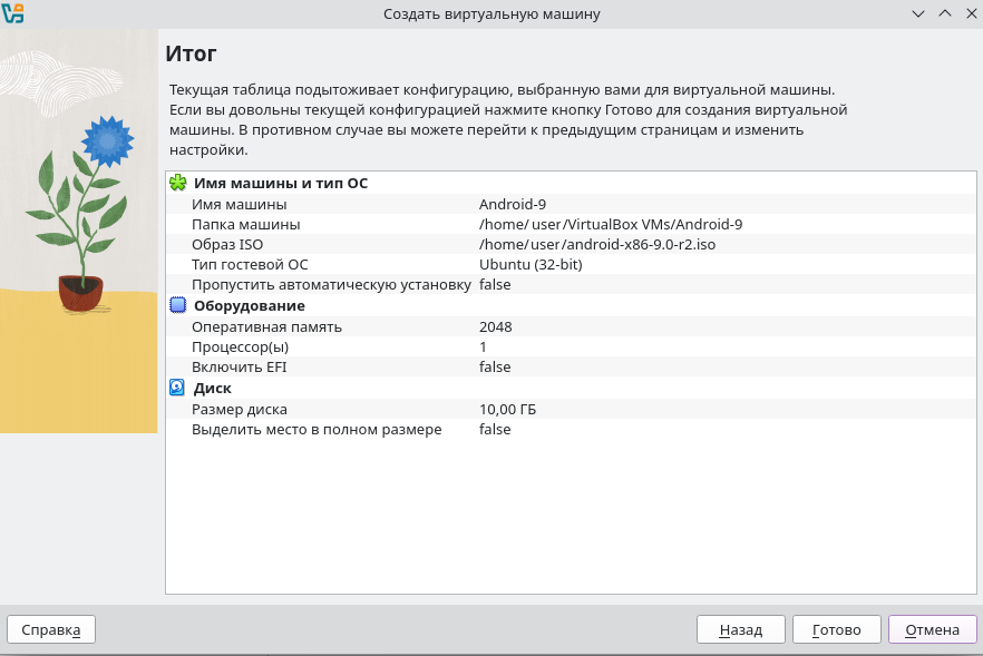 Проверьте параметры ВМ. Если все настроено верно, нажмите «Готово». В противном случае нажмите «Назад» и внесите необходимые изменения.