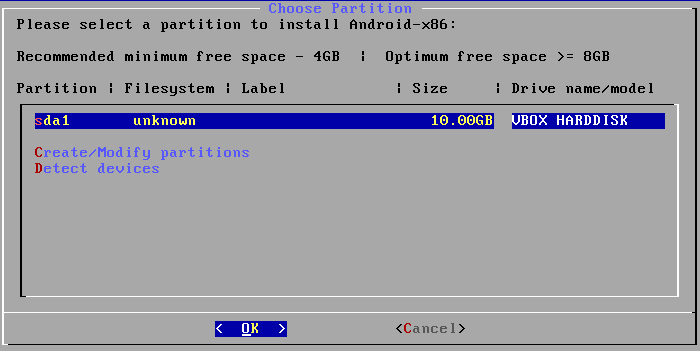 В появившемся окне установщика выберите созданный раздел — на него будет устанавливаться Android.
