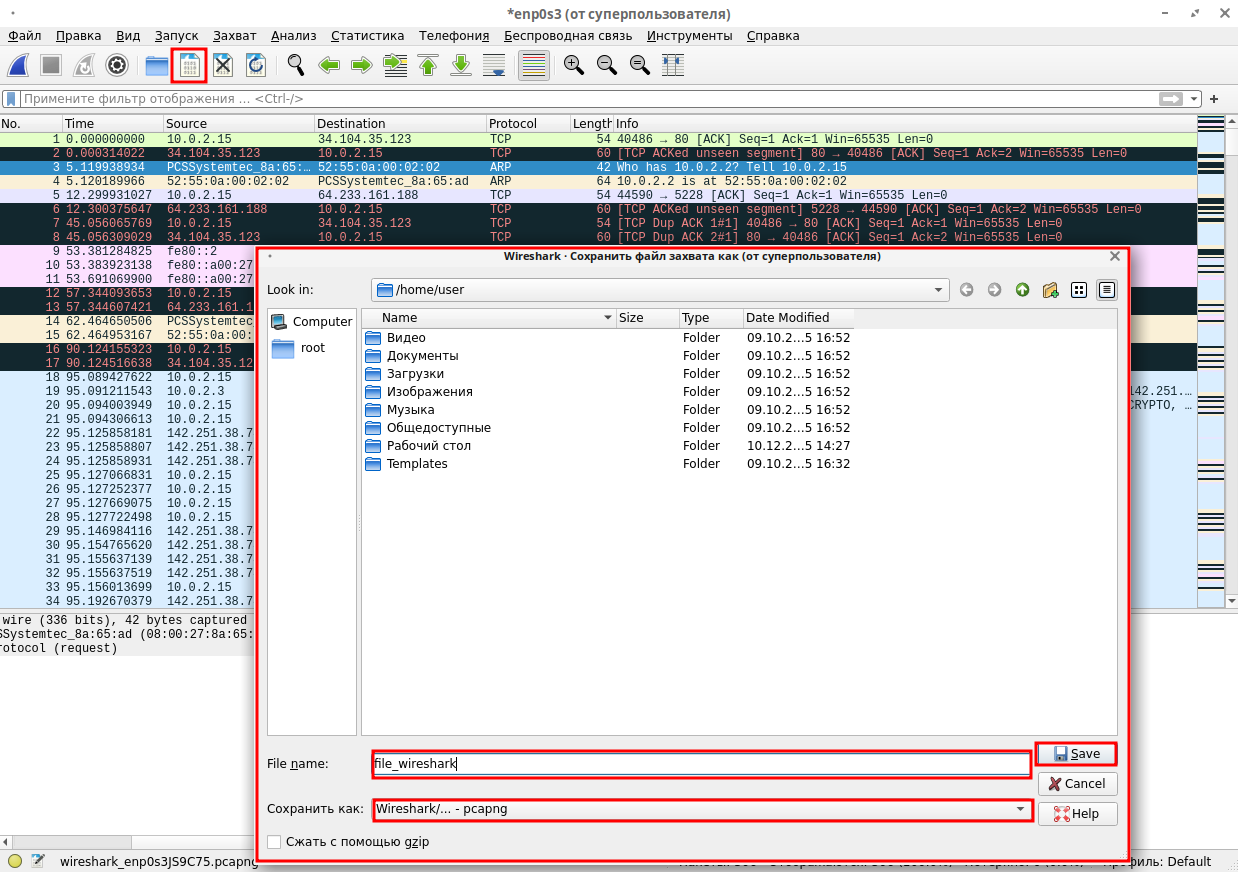 «Сохранить этот файл захвата»;
