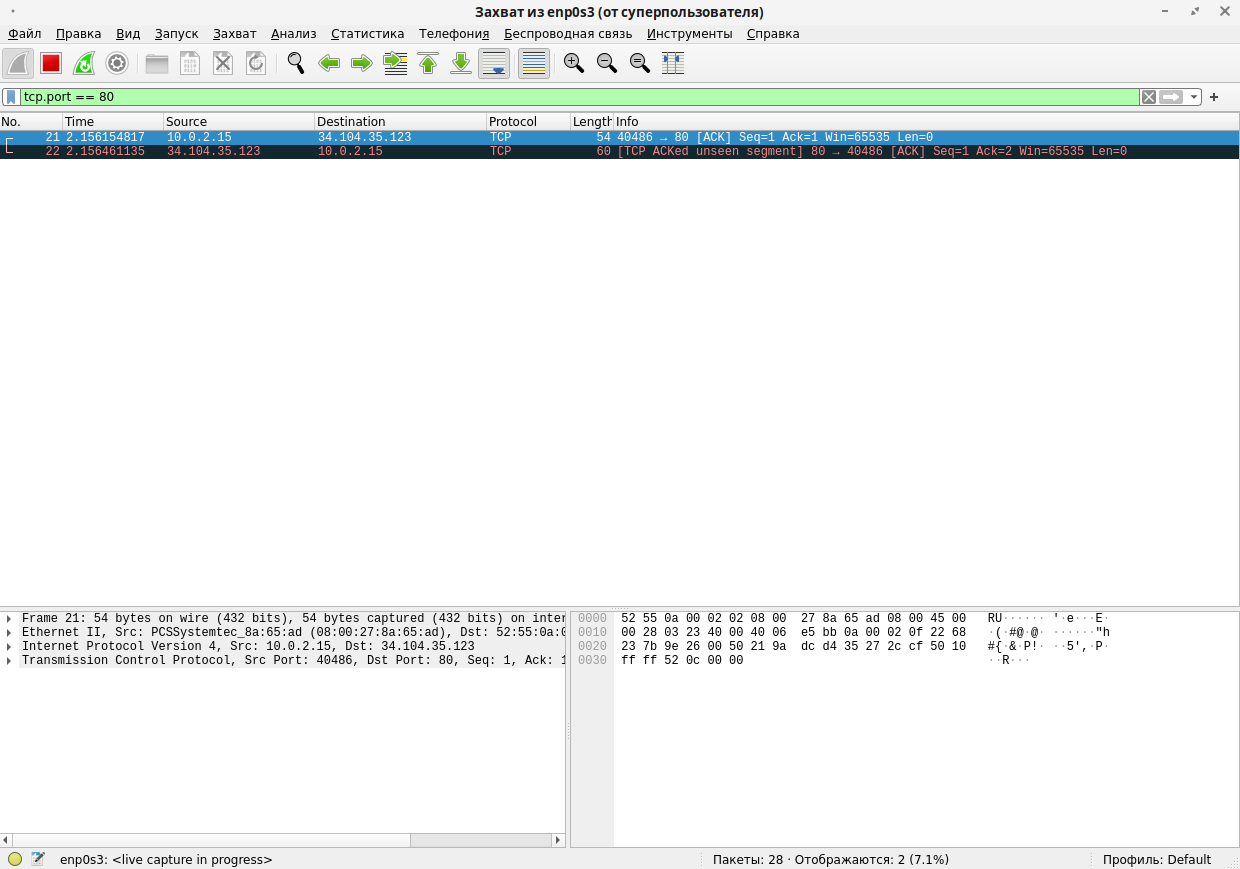 ). Для остановки процесса захвата нажмите кнопку «Остановить захват пакетов» (