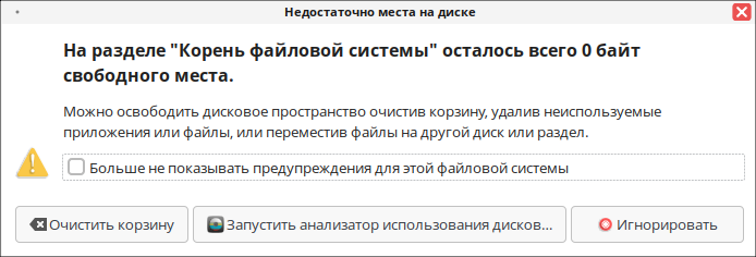 2.12.16 Решение проблемы входа при нехватке места на диске