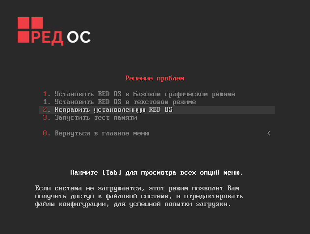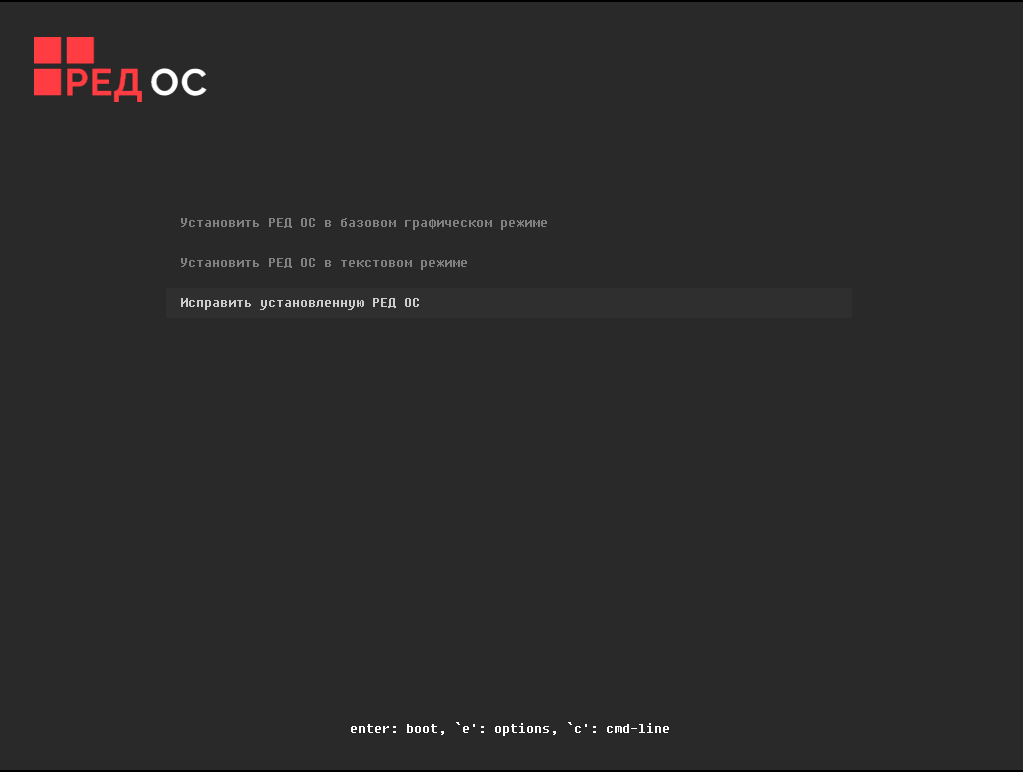 Далее нужно выбрать пункт «Исправить установленную RED OS»: