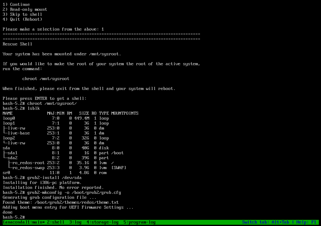 Измените корневой каталог на /mnt/sysroot с помощью команды chroot (это сделает вашу систему корневой средой):