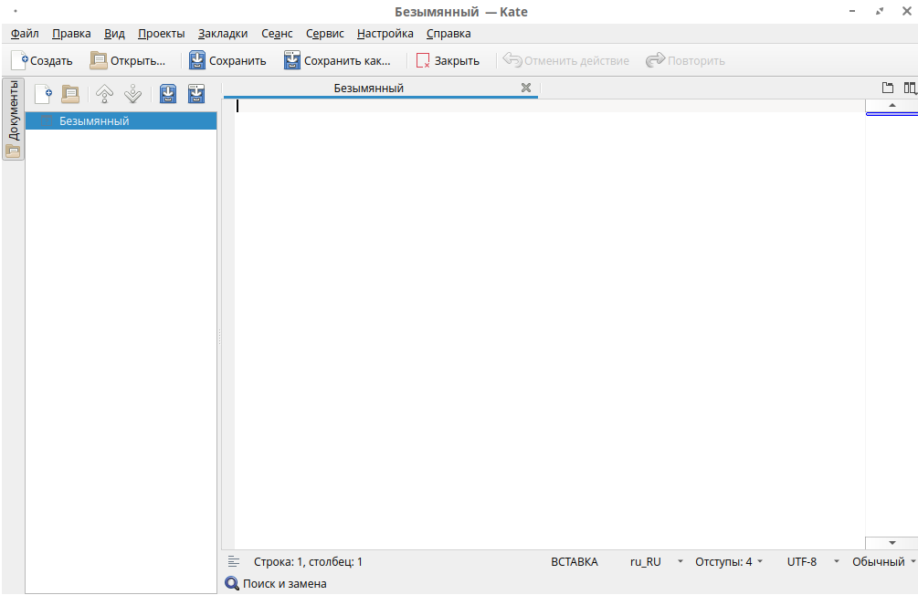 После установки запуск утилиты возможен из «Главного меню» - «Стандартные» - «Kate» или через терминал командой (с правами непривилегированного пользователя):