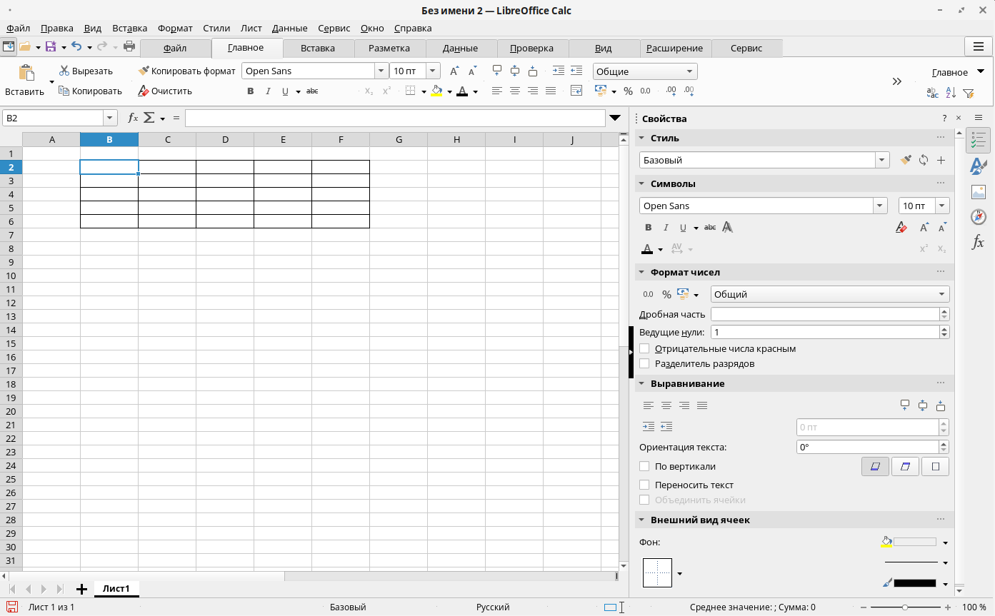 Запуск редактора доступен из «Главного меню» - «Офис» - «LibreOffice Calc» или через терминал командой (с правами непривилегированного пользователя):