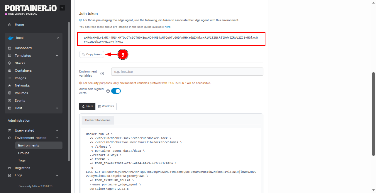 Будет открыта дополнительная секция «Join token», в которой будет отображен токен подключения. Скопируйте токен.