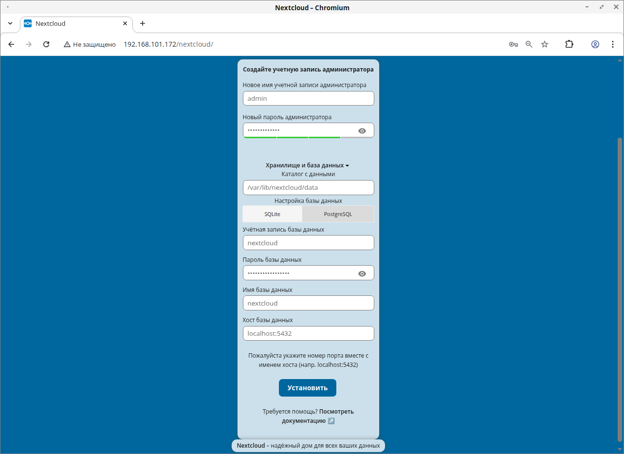 Установка Nextcloud