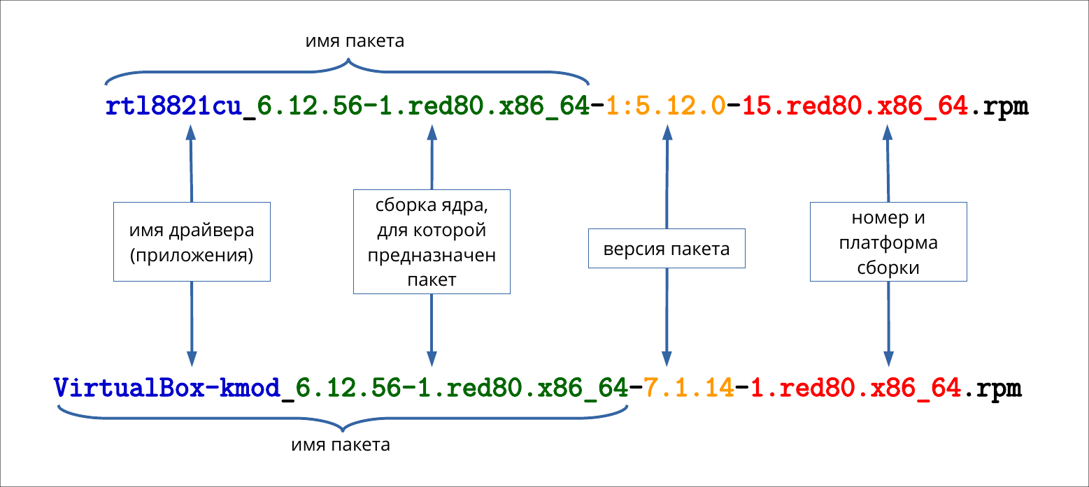 3.3.5.3 О принципах именования пакетов с модулями ядра Linux в РЕД ОС