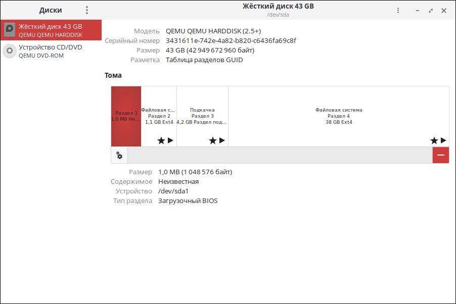 Gnome Disk Utility (Gnome Disks) — простая программа для управления дисками с базовым функционалом.