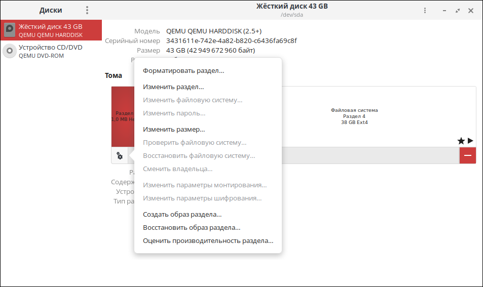 3.7.1.3 Gnome-disk-utility – утилита для управления дисками