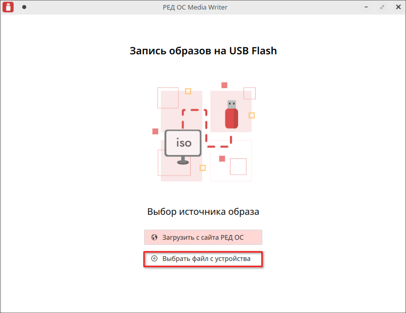 Для записи образа на карту microSD в redos-mediawriter выполните следующий алгоритм действий: