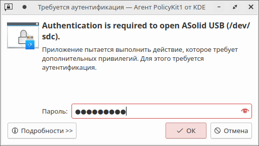 6. Далее введите пароль администратора — приложение требует повышенных привилегий для выполнения операции.