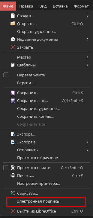 Для активации подписи требуется нажать кнопку «Файл». Если меню «Файл» недоступно, нажмите предварительно кнопку, выделенную на скриншоте: