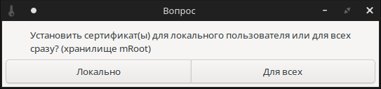 Стоит обратить внимание на диалоговое окно, которое добавлено для работы с КриптоПро версии 5 и выше. Данное диалоговое окно позволяет устанавливать сертификаты в машинное хранилище ПК или в личное хранилище пользователя. Вызов диалогового окна происходит при попытке установки из локального файла сертификата или с токена.