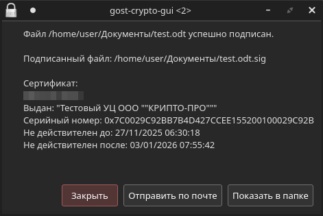 Формат подписи может настраиваться в графической утилите gostcryptogui, которую мы рассмотрим далее.
