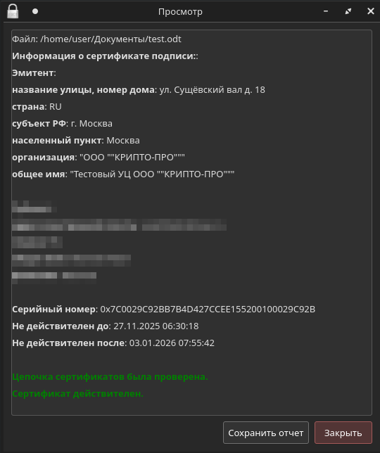 /opt/cprocsp/bin/amd64/certmgr -list -store uMy *** CA cert URL : http://testgost2012.cryptopro.ru/CertEnroll/root2018.crt CDP : http://testgost2012.cryptopro.ru/CertEnroll/!0422!0435!0441!0442!043e!0432!044b!0439%20!0423!0426%20... CDP : http://testgost2012.cryptopro.ru/CertEnroll/testgost2012(1).crl ***