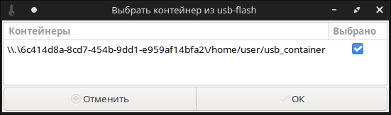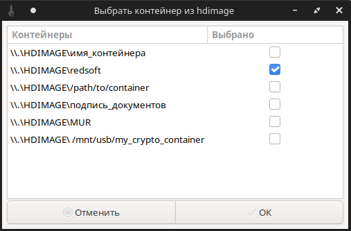 4. Появится окно с выбором контейнера. Выберите необходимый контейнер, установив флаг в поле «Выбранный».