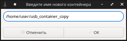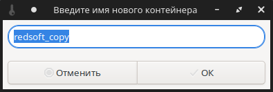 Пользователю предоставляется возможность задать новое имя копируемого контейнера (настоятельно рекомендуется использовать латиницу).