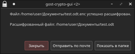 Зашифрованный файл формируется с тем же именем и расширением .enc.
