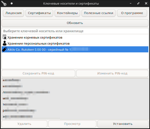 2. Вставьте usb-flash накопитель в компьютер и запустите утилиту Ключевые носители и сертификаты.