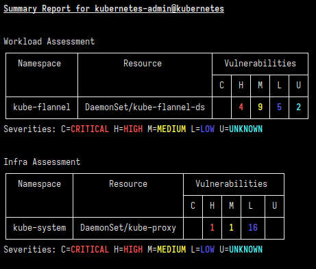 kubernetes(также можно использовать алиасk8s) – запуск сканирования кластера Kubernetes; -