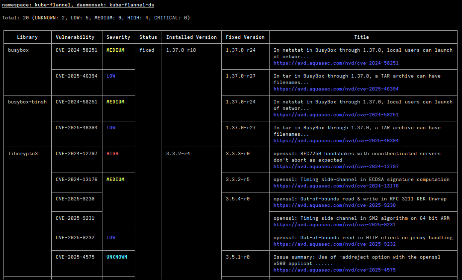Обратите внимание, что файл конфигурации trivy-default.yaml может быть использован только с той командой сканирования, для которой он сгенерирован.