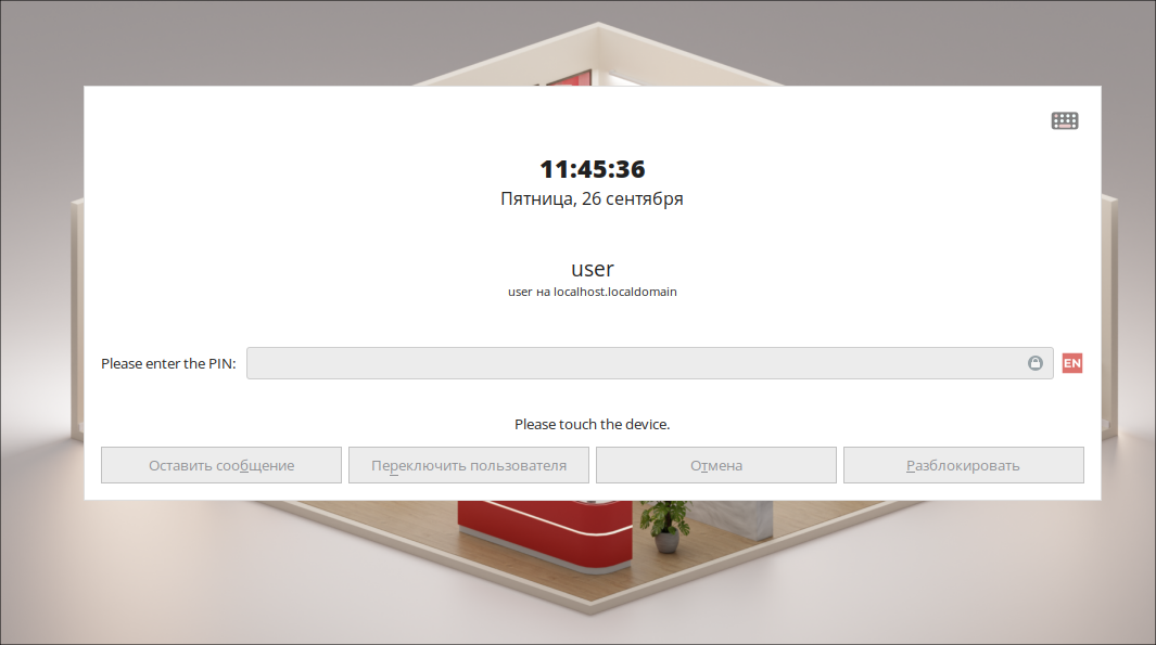 При входе пользователя в графическую оболочку ОС также будет запрашиваться PIN-код и касание кнопки Рутокен MFA.
