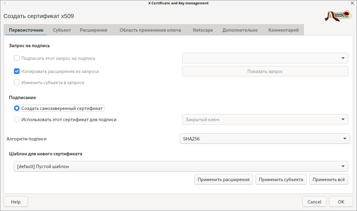 получение широкой поддержки расширений x509v3.