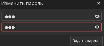 Если введённый пользователем новый пароль нарушает параметры требований к паролям, то РЕД ОС выводит текст предупреждения о нарушении политик с описанием требования, которому новый пароль не соответствует.
