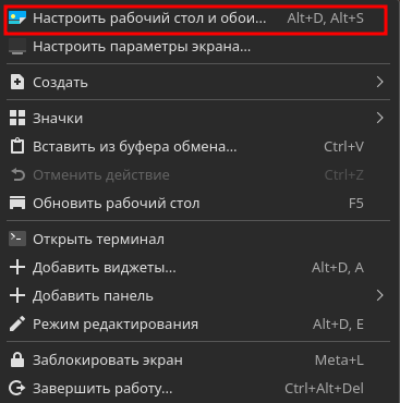 Настройка фона рабочего стола пользователя РЕД ОС