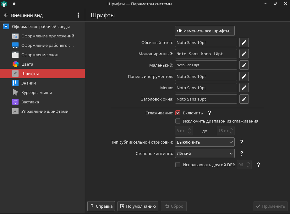 Настройка шрифтов графического интерфейса РЕД ОС