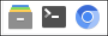 Также здесь отображаются закрепленные для быстрого доступа приложения и системный трей.