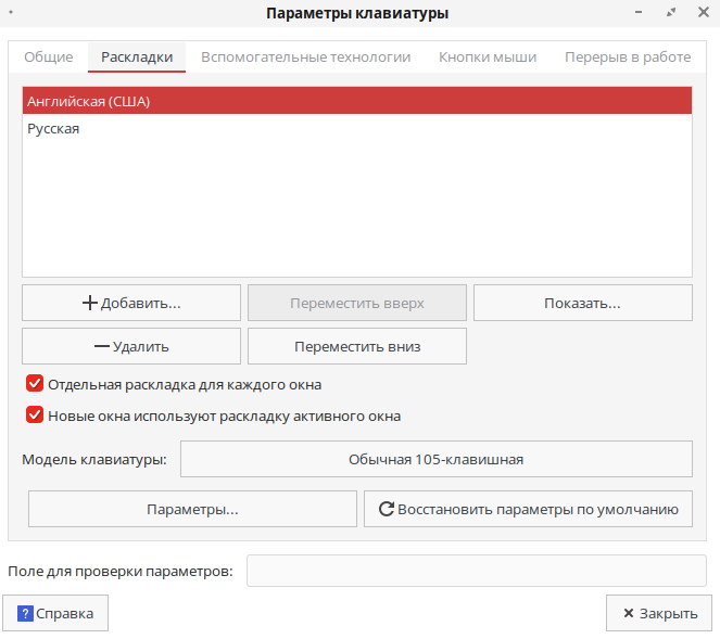 Дополнительно можно выбрать модель клавиатуры, определить раскладки клавиатуры для других рабочих областей.