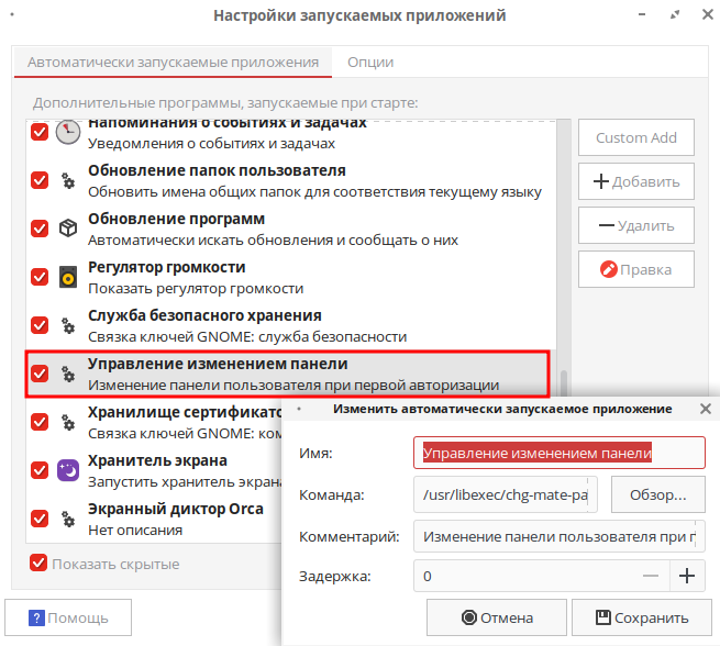 В «Главном меню» - «Параметры» - «Запуск приложений» доступна настройка автоматически запускаемых программ при старте системы.