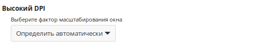 Настройка «Высокий DPI» позволяет увеличить размер всех окон, панелей, виджетов, шрифтов и прочего для дисплеев с высокими значениями DPI. По умолчанию данное значение выбирается автоматически.
