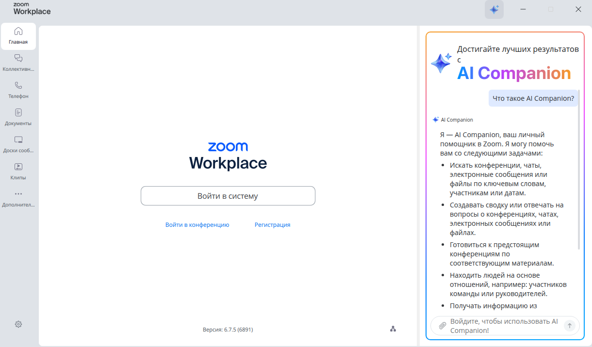 - Версия ПО: zoom-6.7.5.6891-1