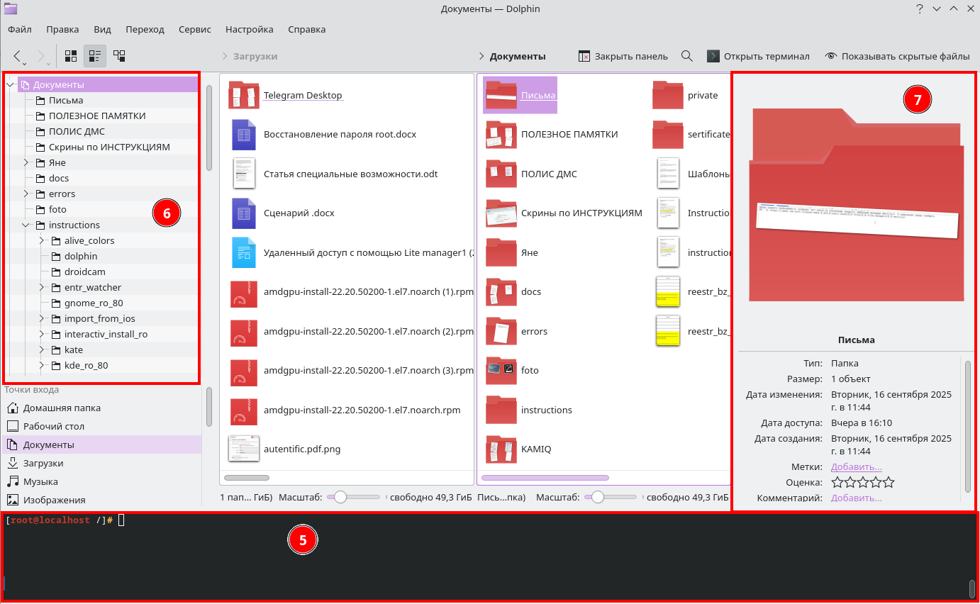Dolphin — файловый менеджер KDE для быстрого перемещения и просмотра содержимого жестких дисков, USB-накопителей, SD-карт и других устройств.
