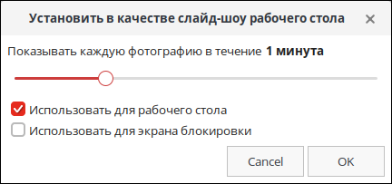 Для установки слайд-шоу в качестве обоев рабочего стола используется утилита Shotwell.