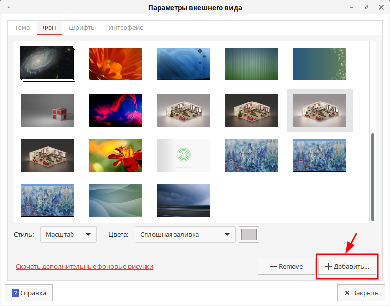 После этого перейдите на Рабочий стол. Вызовите контекстное меню, кликнув ПКМ по свободной части Рабочего стола, и выберите «Параметры внешнего вида». В открывшемся окне нажмите «Добавить».