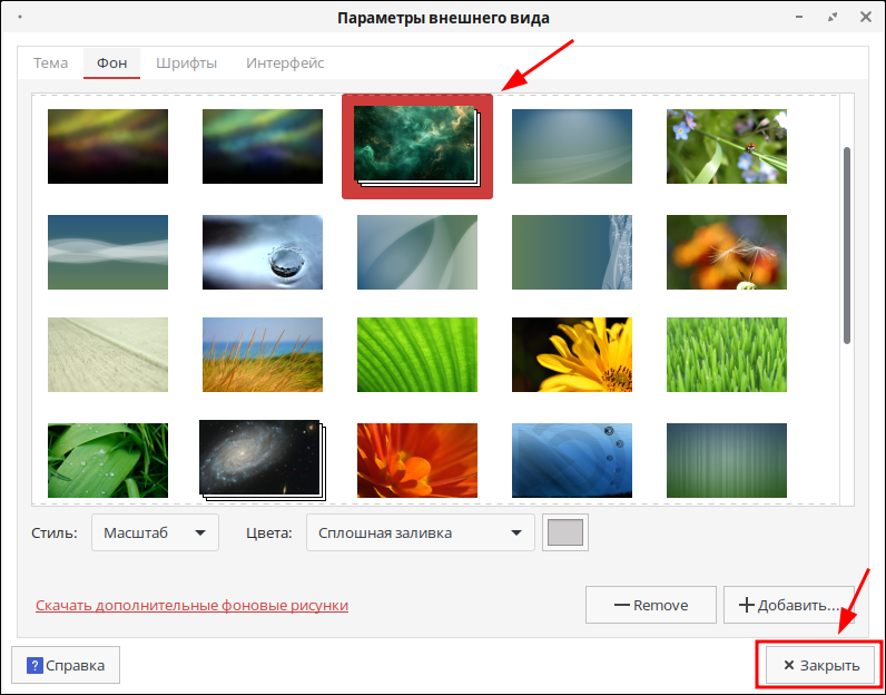 В окне «Параметры внешнего вида» появится созданное слайд-шоу для рабочего стола. Выберите его и нажмите «Закрыть».