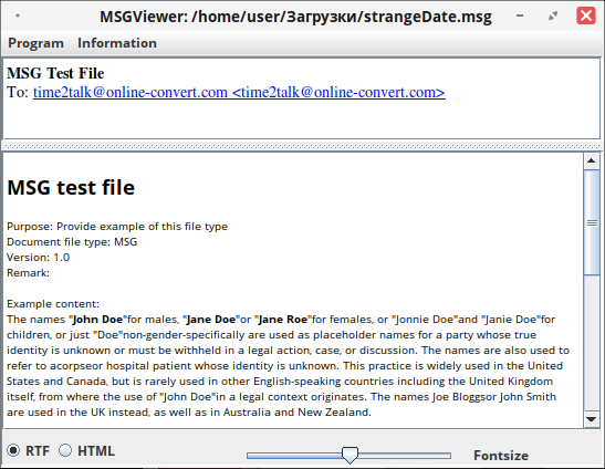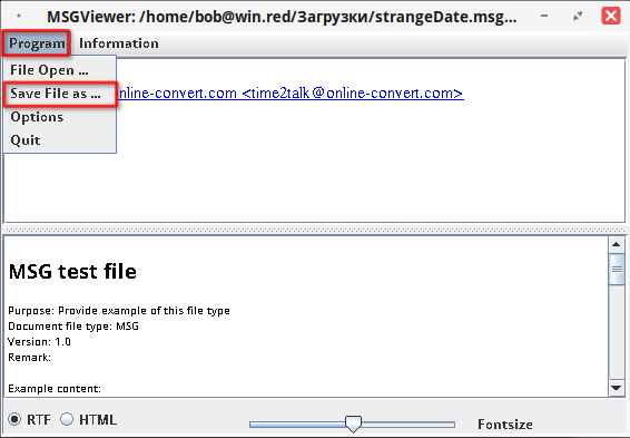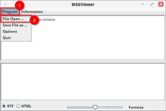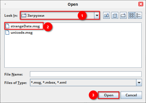 В окне программы msgviewer можно открыть файл .msg двумя способами: