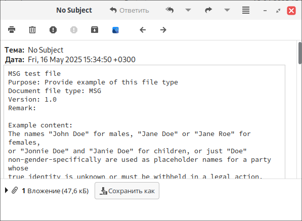 Msgviewer позволяет конвертировать файлы .msg в формат .eml, который более совместим с другими почтовыми клиентами, такими как Thunderbird.