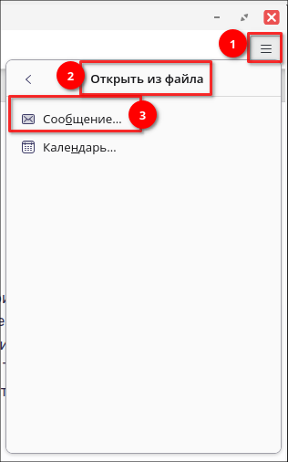 2. Перейдите в меню — «Открыть из файла» — «Сообщение...».