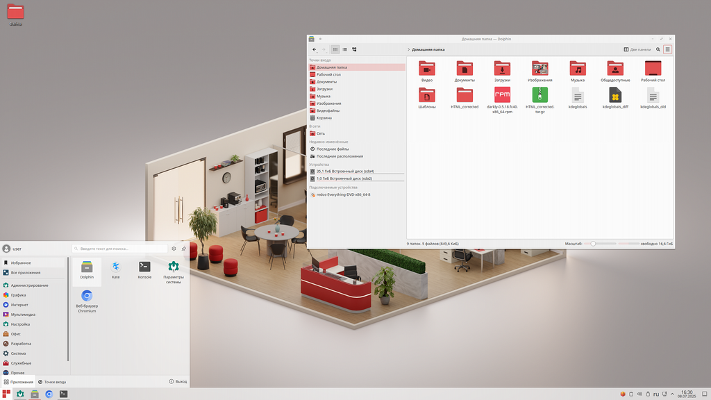 - Набор системных утилит (мониторинг производительности, файловые менеджеры, панель управления)